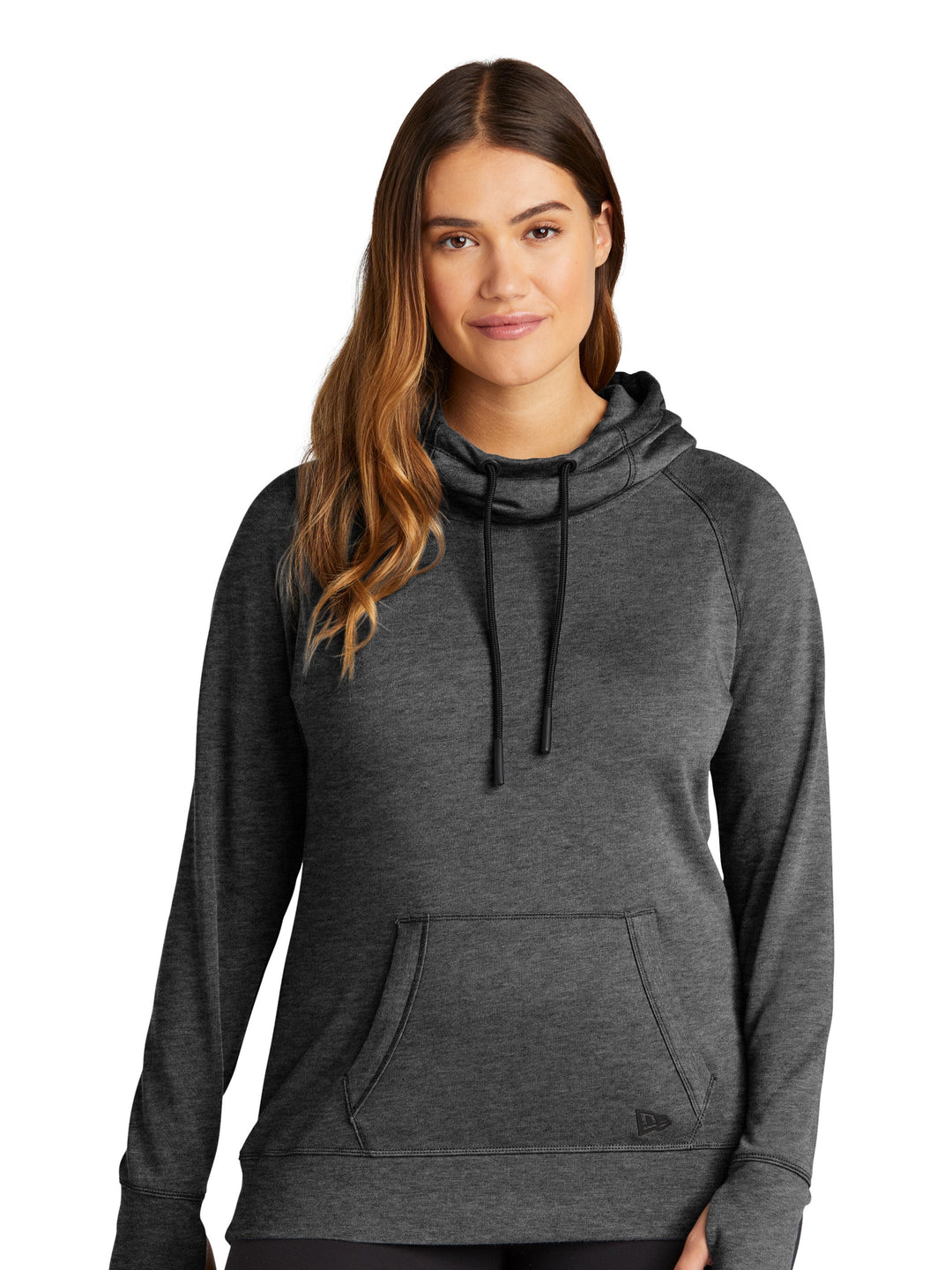 WomeStay cozy in style with the New Era Ladies Tri-Blend Fleece Pullover Hoodie. Made from a soft cotton, poly, and rayon blend, this hoodie features a longer length for extra coverage and a cowl neck for added warmth. The hand-dipped drawcords and curved drop tail hem add unique touches, while the front pouch pocket and thumbholes offer practicality. Finished with a silicone New Era logo and tag-free label, this hoodie is sure to be your new go-to for comfort and style. Item #LNEA510