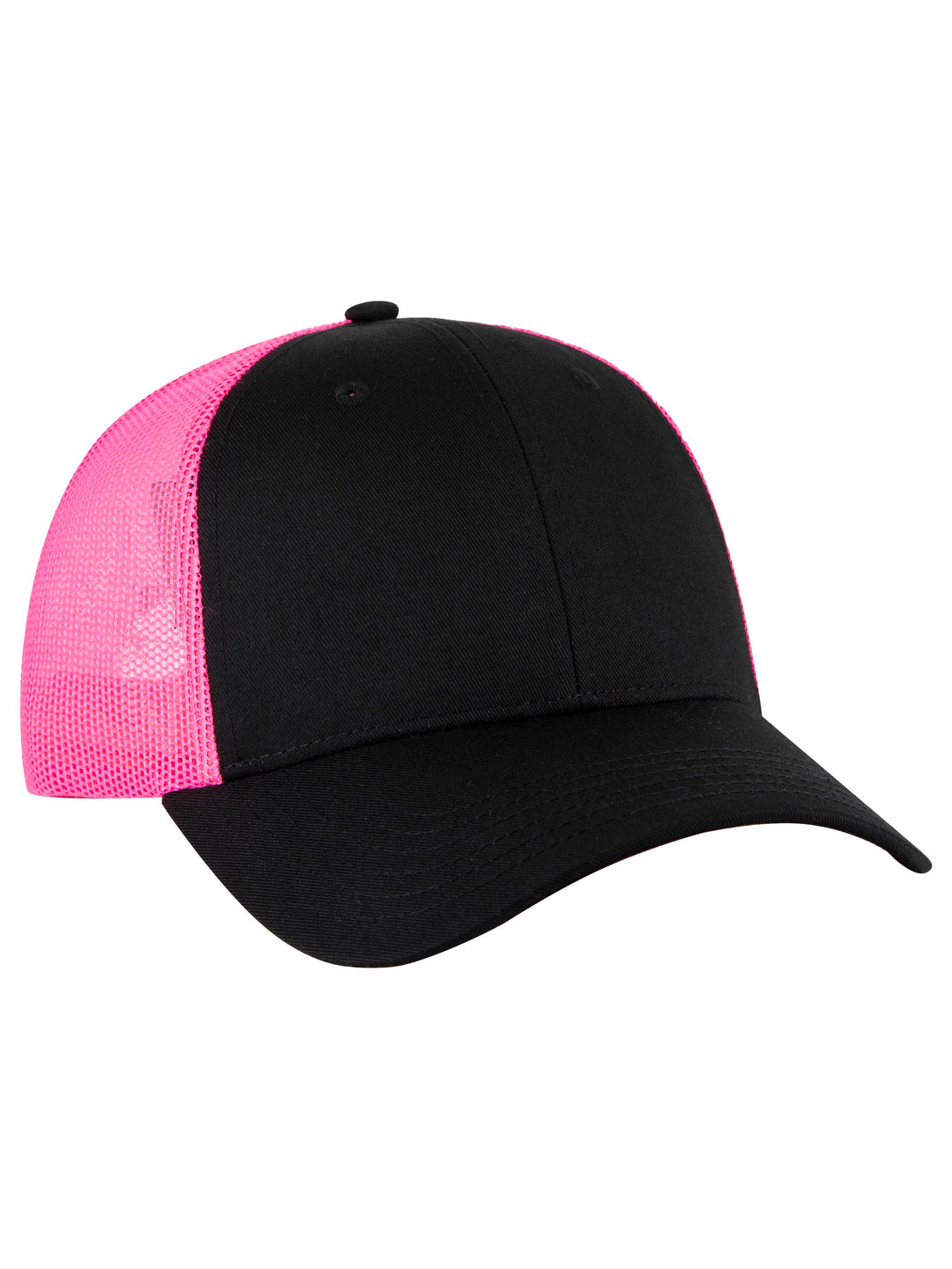 Black and pink mesh OTTO low profile trucker hat, ideal for personalized embroidery or printed hat customization.