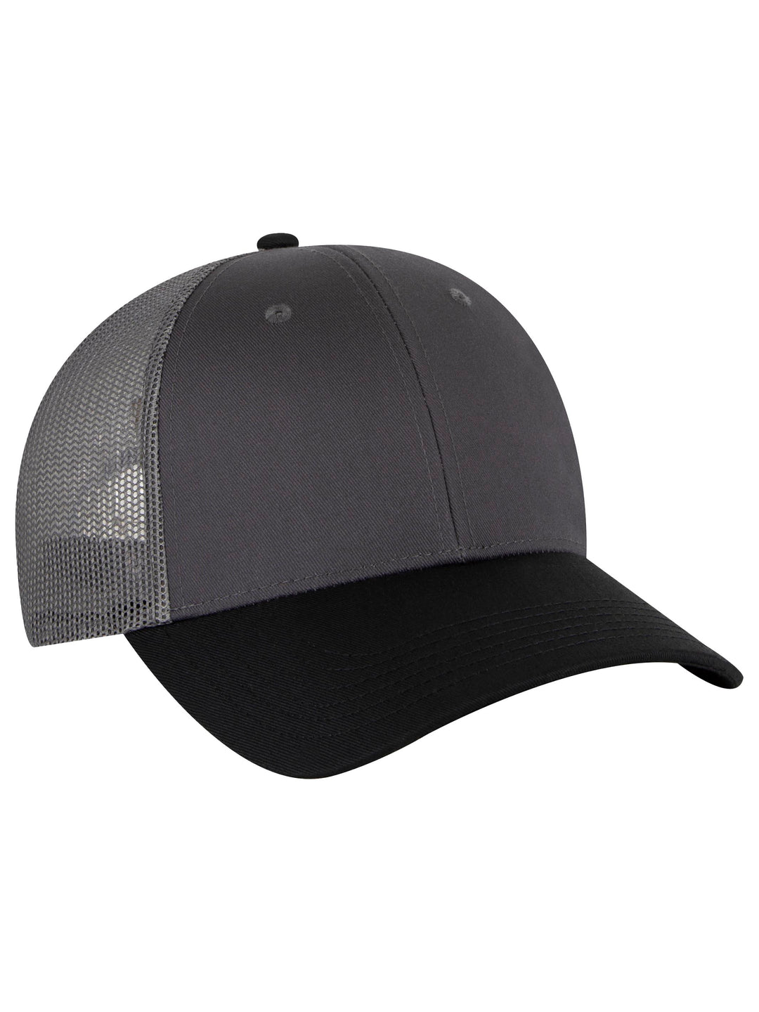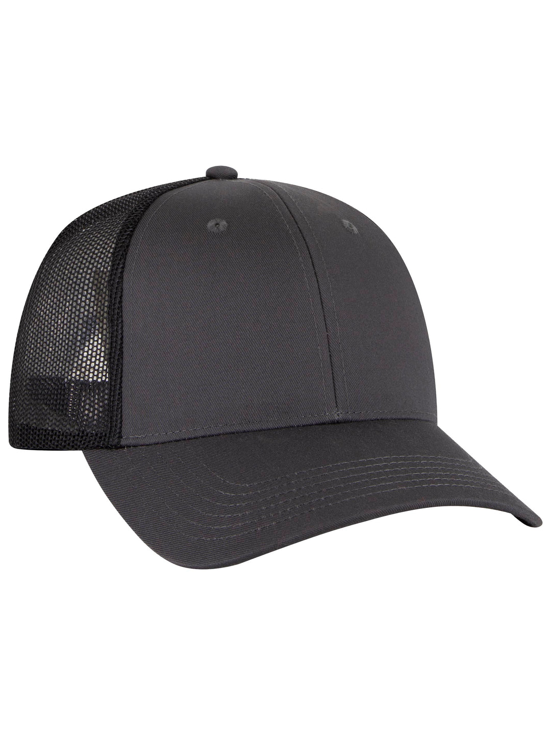 Charcoal and black mesh OTTO trucker hat with low profile design, great for custom embroidery or printed logos.